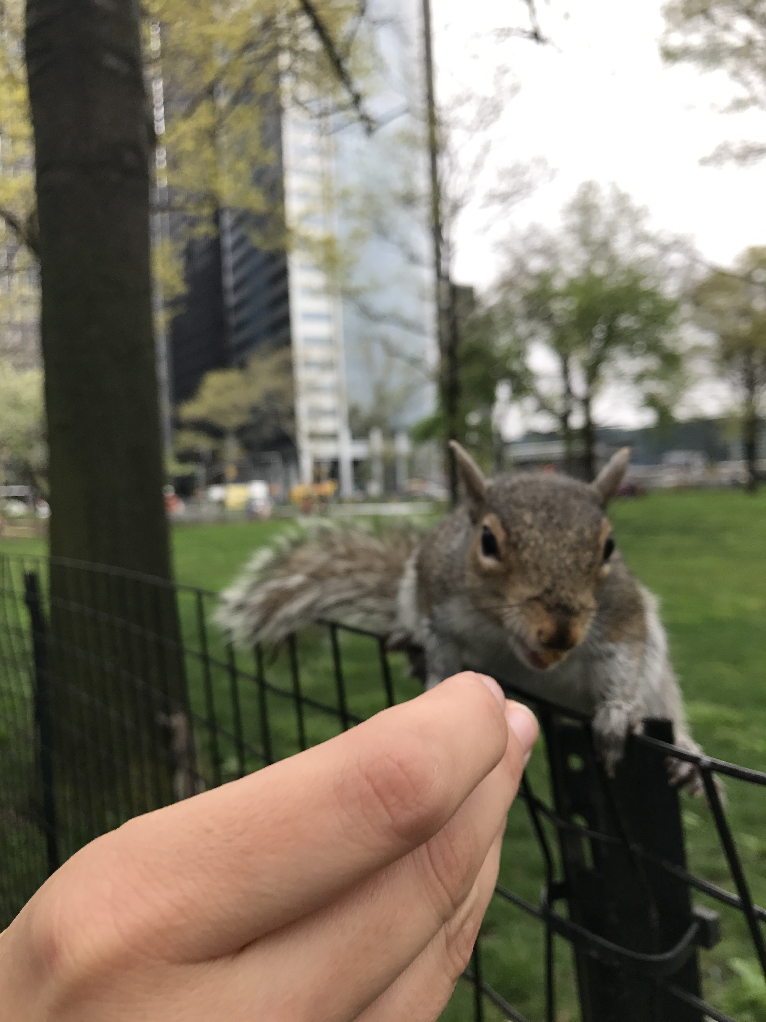 Eliza feeding a squirrel