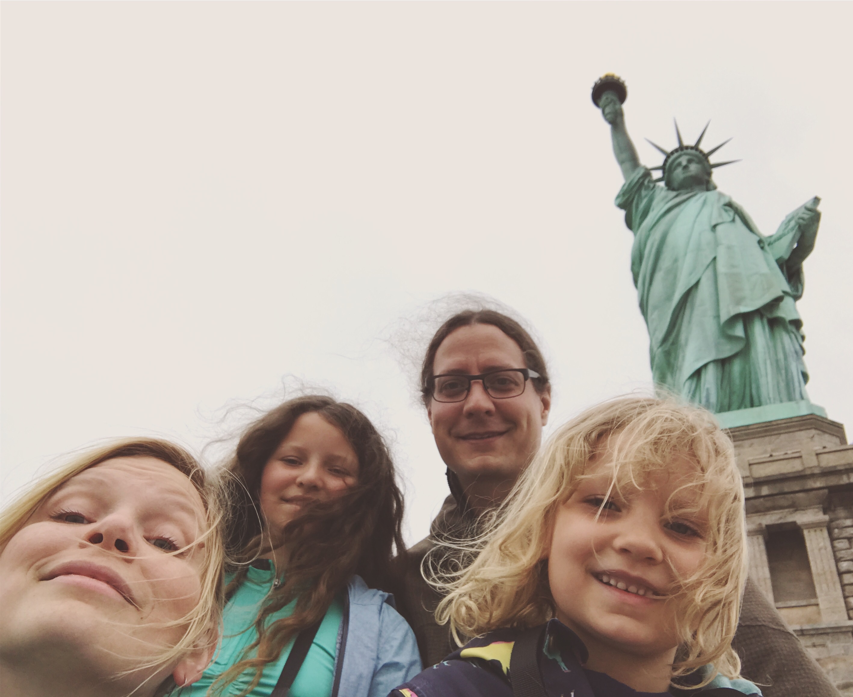 We also took the ferry to visit the Statue of Liberty and Ellis Island.  It was an incredibly moving experience.  We did some family research and found records of family members who passed through Ellis Island in the early 1900’s.  One exhibit, intended for children, encouraged kids to think about packing their belongings and only choosing the most crucial and beloved items for their voyage across the sea.  Georgia could relate to these children, since she was recently required to do similar planning before our sabbatical.  “But they never ever got to go back home after they left?”