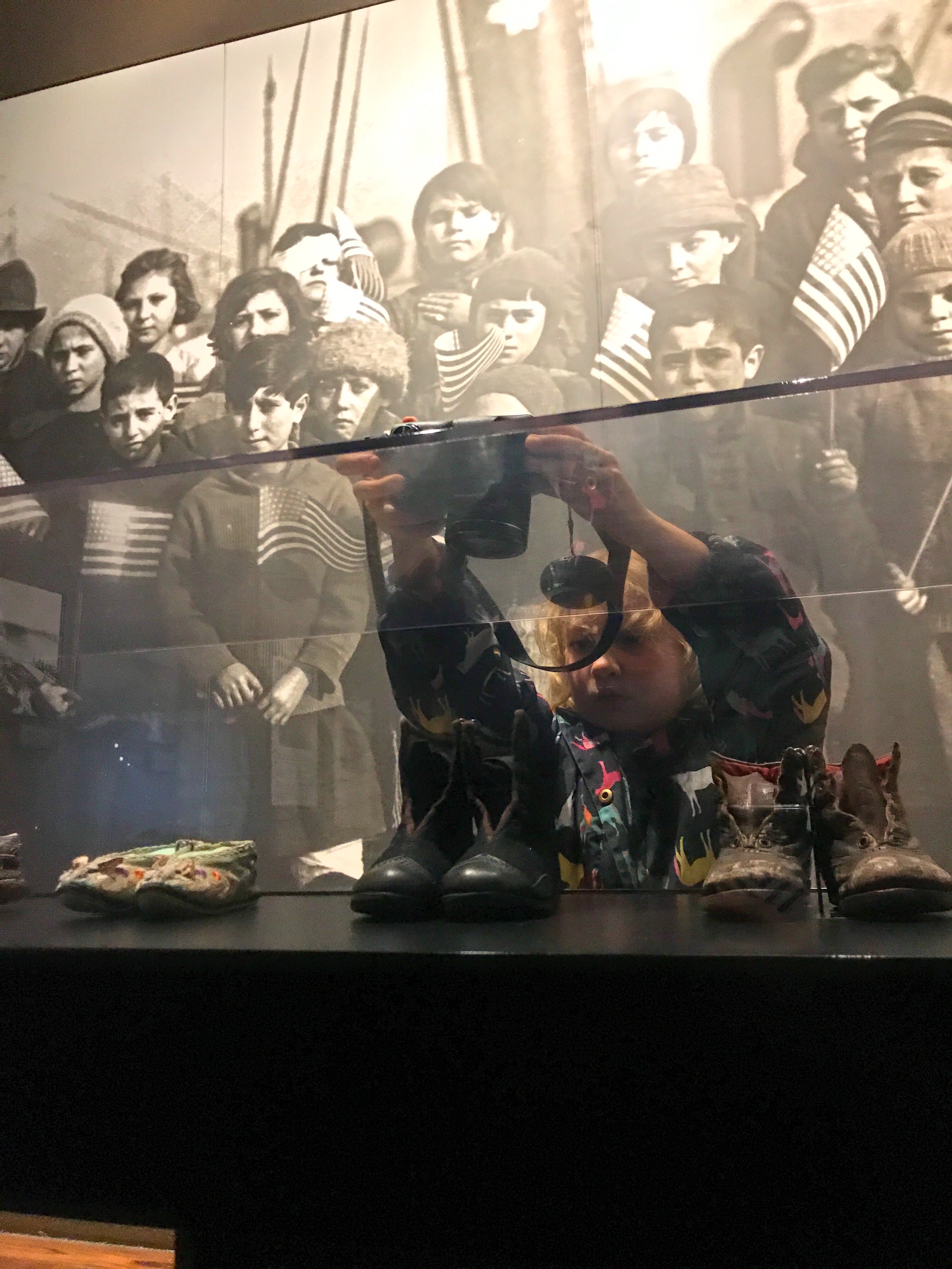 Georgia photographing an exhibit of children’s shoes