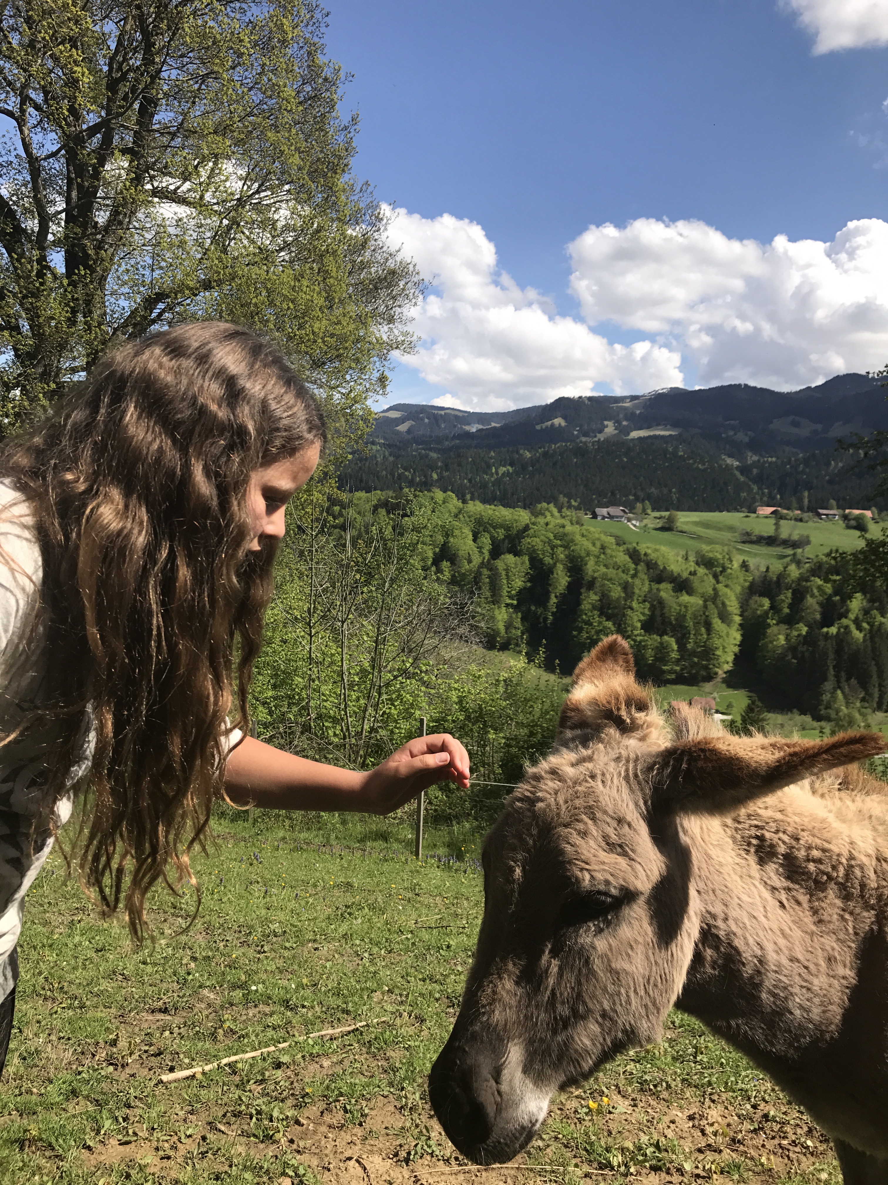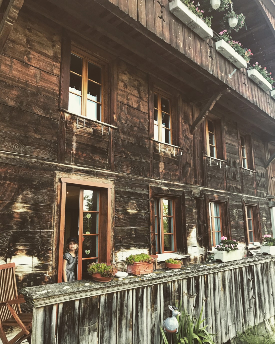 After our wonderful visit with friends in Bern, we headed to the countryside for a three-day farm stay. The “housebarn” we rented was built in traditional Swiss style with the owners occupying the top two floors and our apartment on the ground floor. Swiss housebarns were designed for intergenerational living. Farms were, and in many cases still are, passed on from parents to eldest child. The barn is also incorporated into the same structure as the home. Our kids were delighted to discover that we shared a wall with the horse stable.