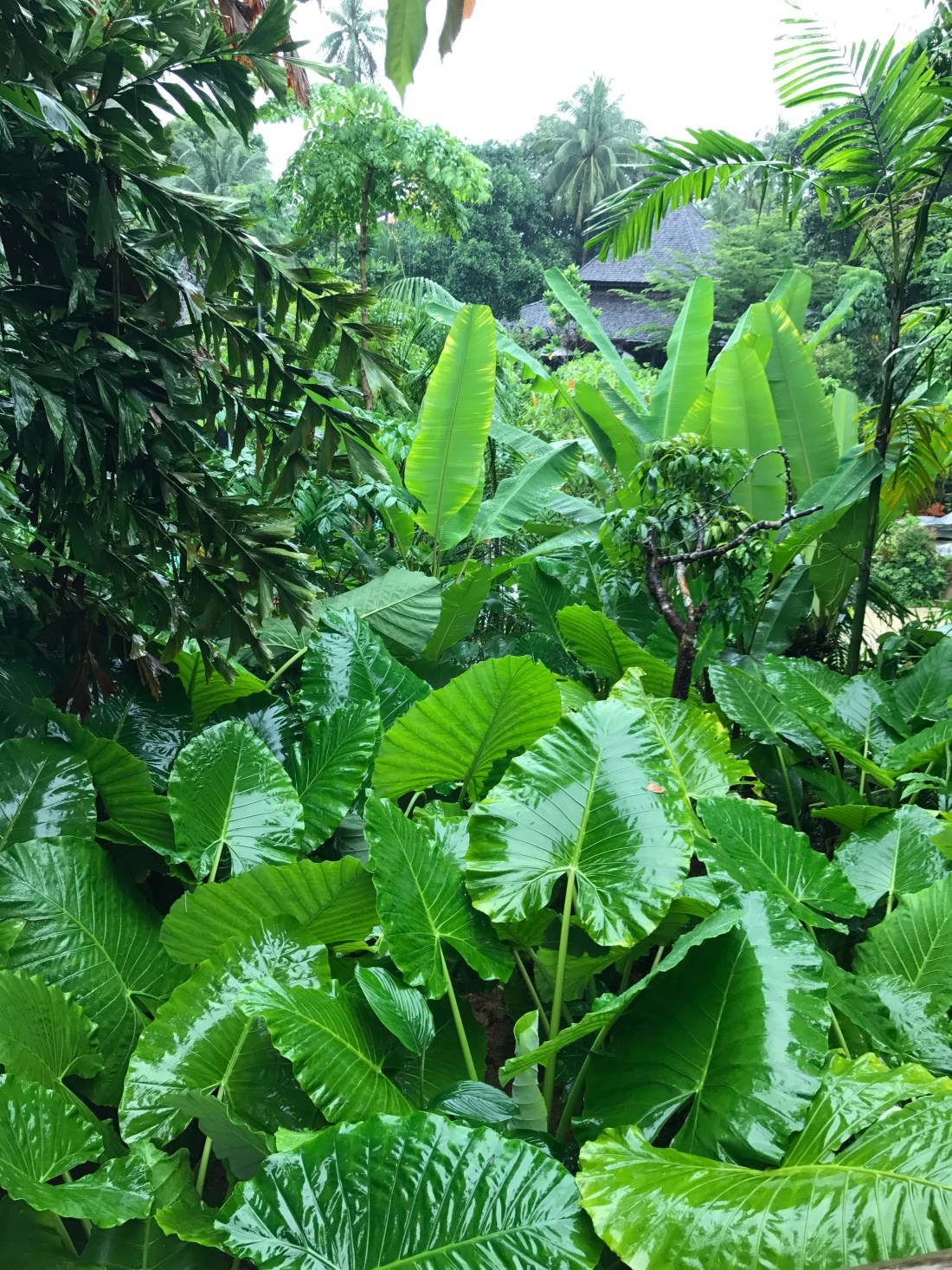 It was raining the day we arrived, so Georgia got a hand-held, umbrella escort to our hut from the woman checking us in.